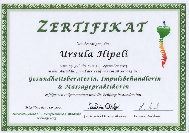 Ursel Hipeli, Dipl. Sozialpädagogin, freiberufliche Gesundheitsberaterin und zertifizierte Präventionstrainerin